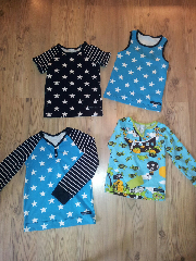ja, åtta par kalsonger fick jag sytt i helgen. Lillkillen hade ont om dem så jag letade igenom spillbitarna och klippte ut lite vad som gick. Kompletterade med lite stjärnor också. mönstret är från Ottobre, var det 6/2009, tro? I vilket fall som helst så är det ett kanonmönster! Sitter perfekt på grabben. Det enda jag ändrar på är att jag sätter mudd istället för resår i midjan. Det känns mjukare och bekvämare så.