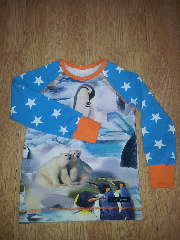 Fototrycket med pingviner och isbjörnar från Stoff och Stil gillar jag skarpt! Jag får nog ta och köpa en bit till av det om det kommer in igen. Får lite ångest när min bit bara blir mindre och mindre! Orange och turkos tyckte jag blev väldigt snyggt till!