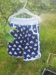 Har sytt tre par shorts till lillgrabben senaste dagarna. Mönster från Ottobres sommarnummer, fast lite förstorade och förlängda så att de slutar strax under knäna. Två av dem finns med på bild, det tredje paret är i Stoff och Stils cupcakejersey och gula kantband.